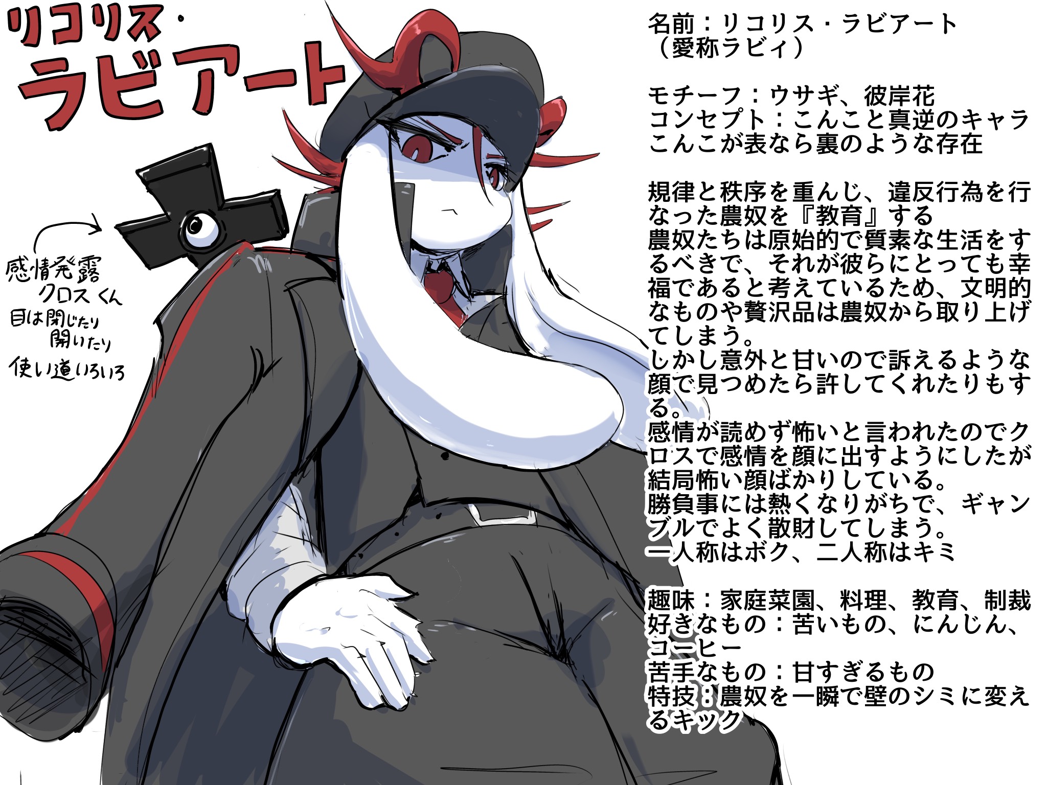 ソースの表示以前のリビジョンバックリンク文書の先頭へ Share via Share via... Twitter LinkedIn Facebook Pinterest Telegram WhatsApp Yammer Reddit Teams最近の変更Send via e-Mail印刷パーマリンク × リコリス・ラビアート 概要 第2回農園公式マスコットキャラ企画に応募された、マスコット候補の一人。 キャラクター/リコリス・ラビアート.txt 最終更新: 2025/08/28 21:40by yako